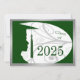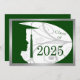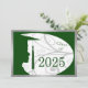 A silhouette of a young man in his cap and gown. Floral designs in the background. The back has a green background with white lettering for the graduation party invitations.