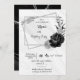 Elegant black and silver grey flowers on a geometric frame on white and silver grey marble background birthday party invitation