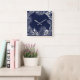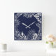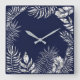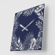 Silver Grey Blue Navy Palm Botanical Metallic Square Wall Clock