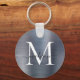 Silver Grey Steel Brushed Metal Girly Script Monogram Keychain