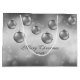 Destei's original illustration of silver grey colour festive Christmas baubles that have a snowflake pattern on them. The background is a lovely grey bokeh. There are also two personalizable text areas.
