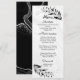 silver grey flowers & black leaves wedding menu
