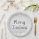 Pretty Silver Grey frost Merry Christmas design Paper Plates.