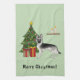 Silver Grey German Shepherd Festive Christmas Tree Tea Towel