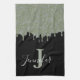 Silver Grey Grey and Black Monogram Glitter Drips kitchen towel