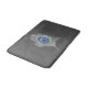Vector drawing of a peacock feather, enhanced and rendered in a soft conte crayon effect - light silver grey / grey, with grey, turquoise and fuchsia pink eye, on a deep graphite grey background Bathmat
