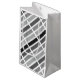 Geometric linear, rectangle, striped pattern of silver, grey and black hues.