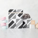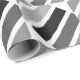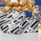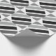 Geometric linear, rectangle, striped pattern of silver, grey and black hues.