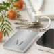 Silver Grey Metallic Monogrammed Key Ring