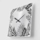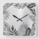 Silver Grey Minimal Black Glitter Metallic Botanic Square Wall Clock