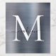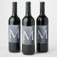Silver Grey Monogram Girly Script Metallic Steel Wine Label