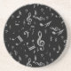 Silver Grey Musical Notes on Black Coaster
