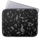 Silver Grey Musical Notes on Black Laptop Sleeve