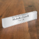 The nameplate looked exactly as pictured, I was very happy with this product! It also arrived promptly after placing my order! I would definitely recommend this product! The printing turned out exactly as I designed it, very pleased!