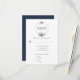 A rustic rsvp featuring a circular frame with silver, grey, navy, and rust winter botanicals with deer head and antlers. The back of the card is navy. Easily personalise with your own information.