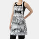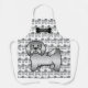 Destei's original cartoon illustration of a cute silver grey coat colour Bichon Havanais / Havanese breed dog. The dog design is placed as a pattern on the background of the apron as well as a larger size on the bottom. The top has a black dog bone silhouette together with a personalizable text area for a name.
