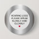 Silver hearing loss 3 inch button is designed by special request from a customer. This 3 inch button can be used to alert people you are hard of hearing. I designed this with a red heart as a reminder that you are loved and for those you talk with that you appreciate their thoughtfulness towards you. It will give the other person notice to take special care in talking. These are great as a gift for somebody you know who experiences hearing loss.