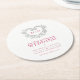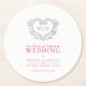 Silver heart berry red wreath monogram wedding round paper coaster