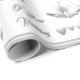 Gorgeous Silver Hearts & Bells Wedding wrapping paper design features the image of silver wedding bells and ribbons with silver hearts patterned against a white background. Customisable text reads, "On Your Wedding" and is displayed in an elegant silver font. A silver and white lining is featured at edges of design.