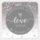 silver hearts handmade with love monogram square sticker