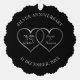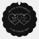 Elegant black background with sparkling numbers and silver hearts. 25th anniversary of marriage