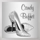 Candy buffet sign with pretty silver glitter shoes on a pretty silver background. You can change the text and remove the background to add your own colour. This is a printed design with no real glitter.
