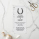 Celebrate your special day with this fun and romantic themed set. Perfect for any rustic, western, country or vintage theme. The background is bright white. In the centre is a silver horseshoe for good luck with four silver embellishments. Each wedding suite piece in this set coordinates but doesn't match exactly. This set has invitations, save the date cards, response cards, thank you cards, table number tent cards, envelope seals, wine labels, binders, return address labels and many more day-of wedding stationery pieces, favours, and gifts available. Use the envelope seal stickers for any of your DIY gifts - these are available in both large and small sizes! All elements are printed on our high quality products, they do not include any real gold, jewels, embossing, or other textile elements. All designs are copyright Noteable Expressions, Inc. All rights reserved.