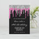 Silver Hot Pink Glitter Drips Black 18th Birthday Invitation