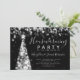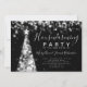 Elegant Holiday Housewarming Party invitation design with Silver Christmas Tree Lights motif, custom name and date and additional text