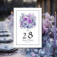 Silver, icy blue, and lilac floral winter wedding guest details card. Ideal for a garden wedding.