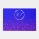 Pretty blue background with purple glitter and silver initials monogram inside a circle for you to personalize.