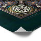It's been a long while since I was a pagan (I just don't do gods any more), so don't jump to too many conclusions here; I simply wanted to do something interesting with a bold shape encrusted with knotwork, and I thought that this would be a really striking image. Eventually I did something similar with a Celtic cross, just to muddy the theological waters even more, or to give equal time, or something - because it's also a striking symbol in its Celtic version. I've done two treatments of the pentacle, one gold, and the other silver; each one is essentially the same except for its palette. There are eighteen "gripping beast" dragons - ten in the circle, eight in the corners - with several panels of interlaced bands - and of course the pentacle itself is here turned into a knotwork design.