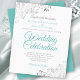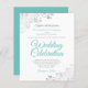 Silver Lace & Aqua BUDGET White Wedding Invitation
