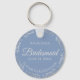 These beautiful bridesmaid keychains are designed to be given as a gift or wedding favour. The design is simple yet elegant and features a frilly silver grey faux foil border with pale grey text on a dusty periwinkle blue background. There is space for her name, the wedding date and the names of the couple. Great way to thank her for being a part of your special day!