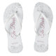 Dance the night away with these beautiful wedding flip flops. Designed for the bride, they feature a simple yet elegant design with dusty rose or mauve pink script lettering on a white background and fancy silver grey lace curls and swirls. Beautiful way to stay fancy and appropriate while giving your feet a break after a long day.