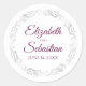 Silver Lace Elegant Cassis Purple on White Wedding Classic Round Sticker
