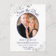 This beautiful save the date postcard is designed to give your friends and family advance notice of your upcoming wedding. It features a simple yet elegant design with navy blue text on a white background, and your photo in an oval frame surrounded by frilly silver grey faux foil curls and swirls. The back has a cute graphic reading "pencil us in" and space for a custom note.