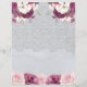 A silver effect paper, with lace design and pink and plum coloured floral arrangements.