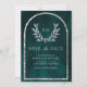 Silver Laurel Wreath Leaves Dark Teal Wedding Save The Date