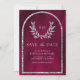 Silver Laurel Wreath Leaves Fuchsia Pink Wedding Save The Date