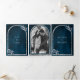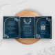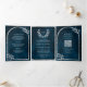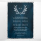 Silver Laurel Wreath Leaves Ocean Blue Wedding Tri-Fold Invitation