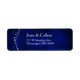 This beautiful return address label in tones of silver and royal blue will give a sense of elegance to your wedding mailings. The front left has a graceful silver swirl adorned with a few leaves. Your text is in silver at the right of the image. Everything is placed on a stunning deep blue gradient background that seems to almost glow. These labels match the wedding invitations of the same title in our store.
