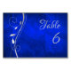 Silver Leaf Swirl Bright Blue Wedding Table Number