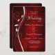 Silver Leaf Swirl Deep Red Wedding Invitation