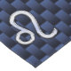 A silver chrome like Leo Zodiac symbol on a navy blue carbon fibre style design texture print background. A modern urban racy design for a great custom birthday gift idea.