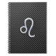 Silver Leo Zodiac Symbol on Carbon Fibre Print Notebook