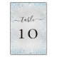Silver light blue glitter sparkles winter table number