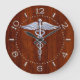 Silver Like Caduceus Medical Symbol Mahogany Dial Large Clock