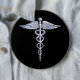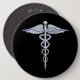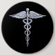 Silver Like Caduceus Medical Symbol on Black Decor 6 Cm Round Badge