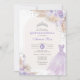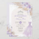 The perfect invitation for your daughter's quinceañera is finally here! This chic and lovely lavender quinceañera invitation features soft pastel purple roses, an elegant princess ball gown, a sparkly silver tiara and tropical boho elements. Click the "customise further" button if you wish to re-arrange and format the style and placement of the text.